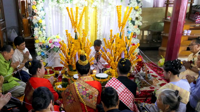 Le Pha Khouane est une cérémonie traditionnelle laotienne profondément ancrée dans la culture bouddhiste et animiste du pays. Elle vise à rassembler les « khouane », ou âmes, qui se seraient éloignées du corps d’une personne, afin de lui apporter chance, santé et prospérité. Cette cérémonie est souvent organisée lors d’événements importants comme un mariage, une naissance, un départ en voyage ou une guérison. Au centre de la cérémonie se trouve une composition florale sacrée appelée « pha khouane », autour de laquelle les participants récitent des bénédictions et attachent des fils de coton blanc aux poignets des personnes concernées. Le Pha Khouane est un moment de partage, de lien communautaire et de transmission des valeurs spirituelles laotiennes.